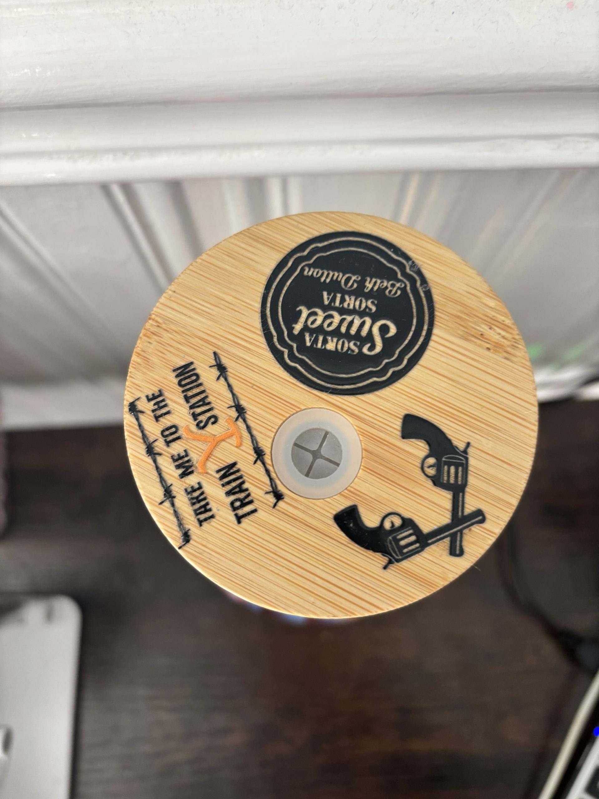20 oz rhinestone snow globe with bamboo lid and clear plastic straw